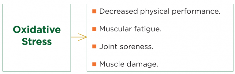 Durante o exercício físico, o fluxo de oxigénio para os músculos esqueléticos ativos aumenta, o que leva à produção excessiva de ERO, radicais livres e, eventualmente, ao stress oxidativo. (Kinnunen et al 2005). Para prevenir o stress oxidativo, o organismo contém uma grande rede de antioxidantes que previnem a formação de ERO ou eliminam os radicais livres. Os mecanismos de defesa que lidam com o stress oxidativo dependem principalmente do sinergismo entre vários antioxidantes endógenos e dietéticos.